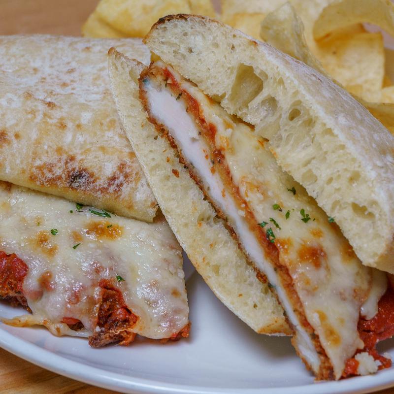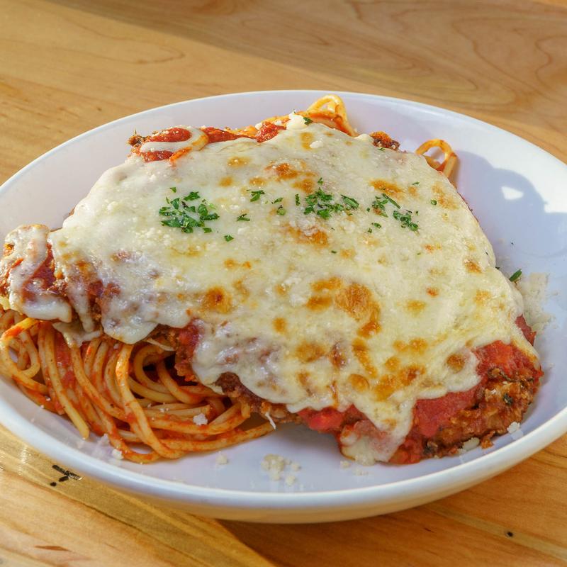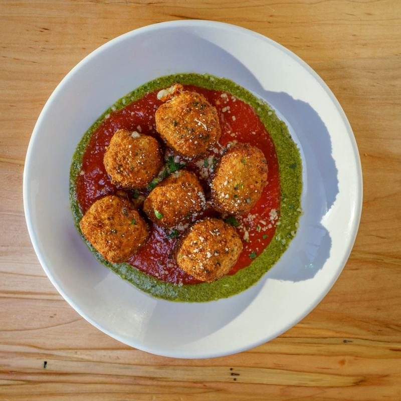 House Pulled and Breaded, Tomato Sauce, Pesto