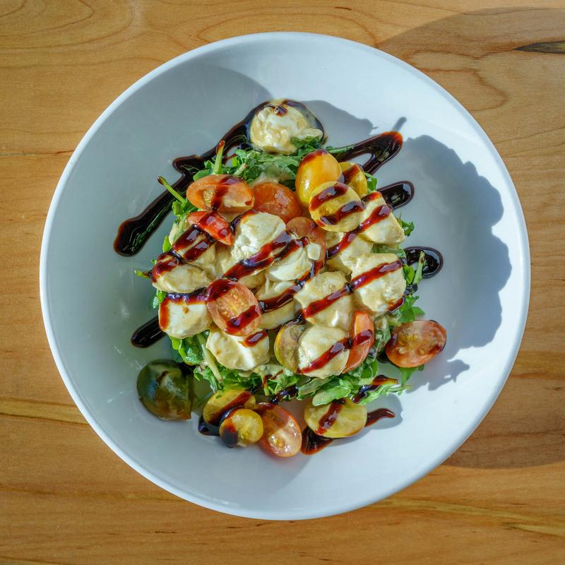 Marinated Heirloom Cherry Tomatoes, Mozzarella Pearls, Balsamic Vinaigrette